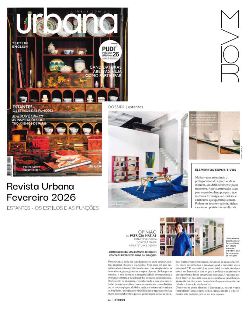 Mais uma vez, marcamos presença na revista Urbana. Desta vez, num artigo sobre Estantes: Estilos e Funções. Duas obras recentes do nossos atelier ilustram o nosso contributo para este artigo.