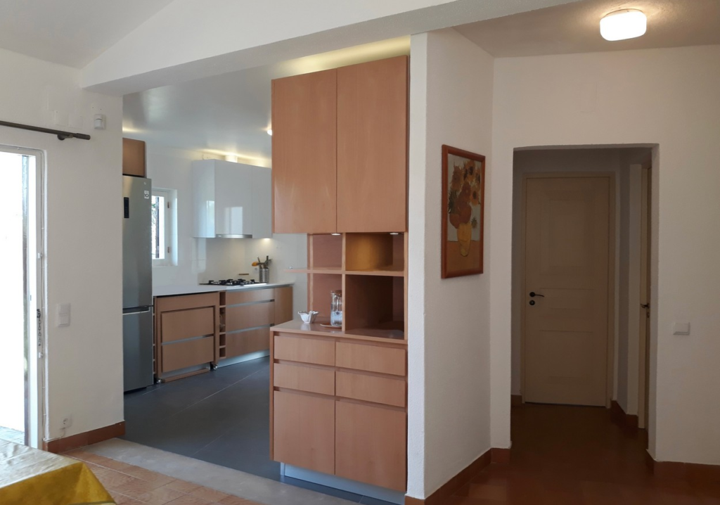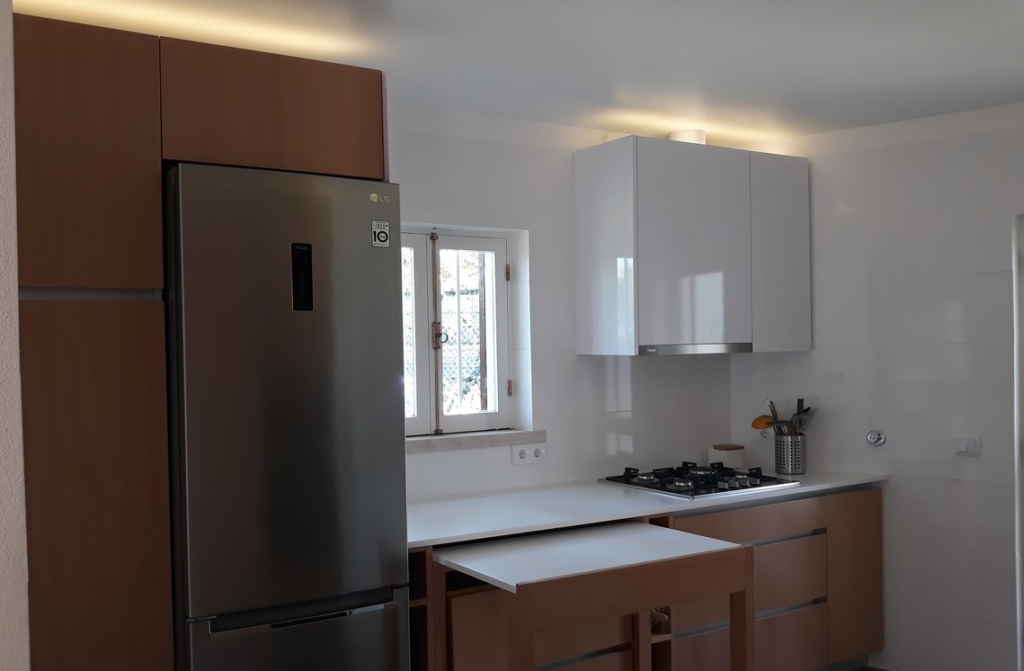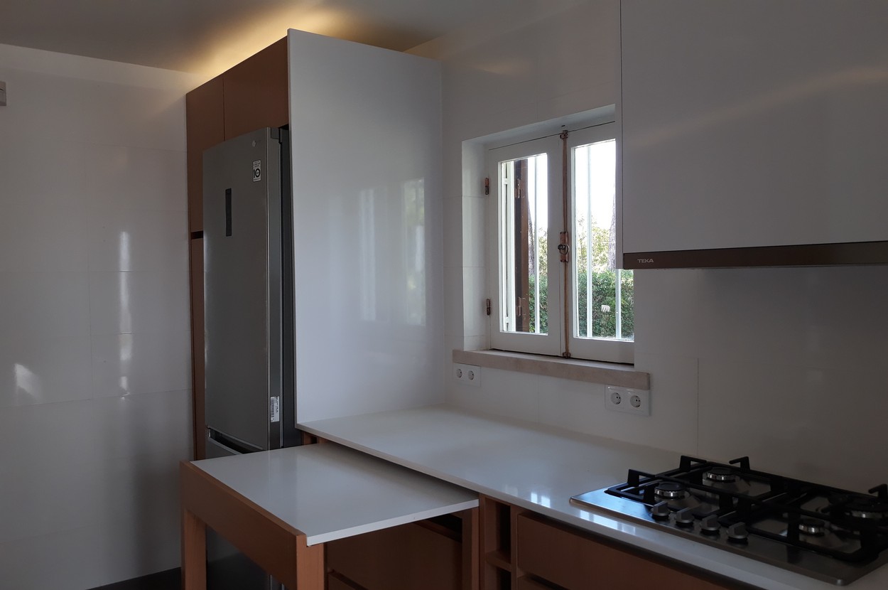 Abertura da cozinha para a sala e remodelação das instalações sanitárias.