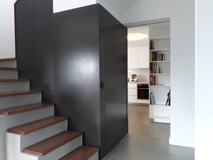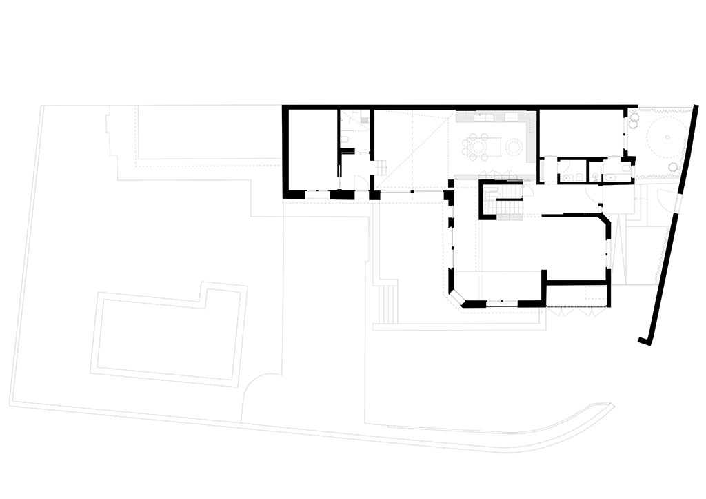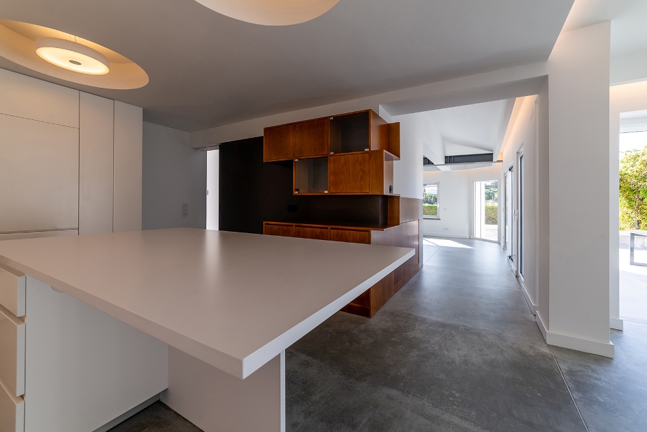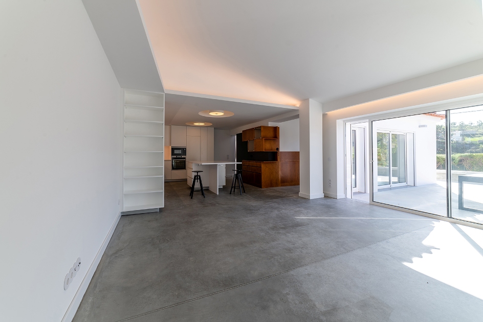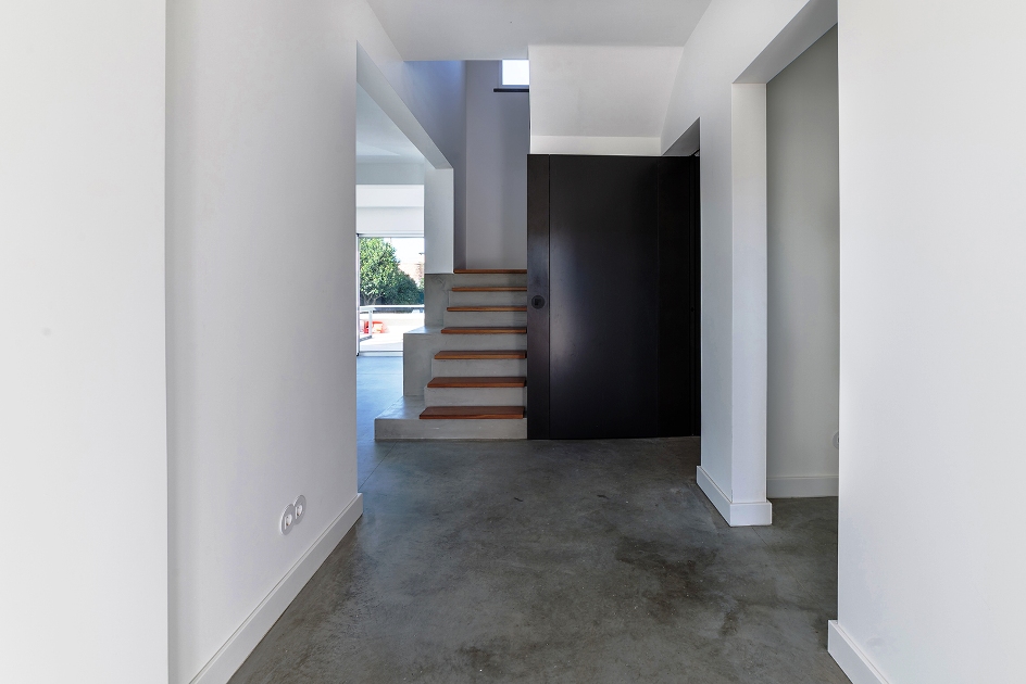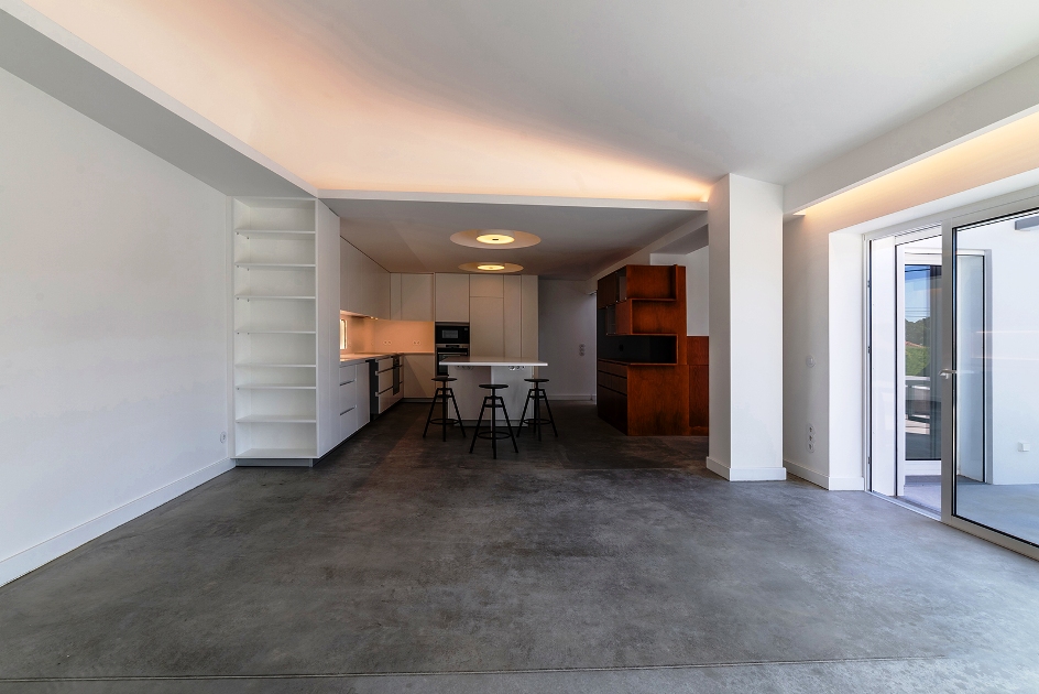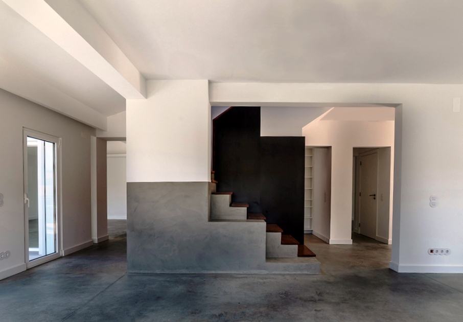 Remodelação de moradia unifamiliar. O redesenho do volume central da casa, composto pelo núcleo das escadas, que ficou agora “solto”, permitiu a fluidez dos espaços à sua volta: sala de estar, sala de jantar, cozinha e hall de entrada. Os pavimentos das diferentes salas foram também nivelados à mesma cota, aproveitando-se para colocar pavimento radiante. Um novo terraço, de acesso pelas salas, permite agora um melhor usufruto do espaço exterior e do jardim.